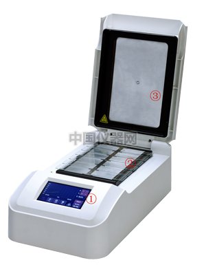 TDH-500原位雜交儀系統一次可處理12張玻片。全密封式上蓋設計和全自動的加濕方法保證了理想的溫度和濕度,系統保證了高度的溫度均一性,使得所有玻片溫差上下不超過土1 ℃。玻片很容易用手取出或放入。利用觸摸屏可以簡單快速的編輯40個用戶定義方案和3種操作模式:變性/雜交、雜交、固定溫度、自定義以及原位PCR實驗(In-situ PCR)模式。