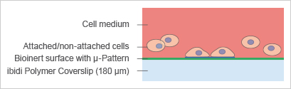 粘附性。微型化的粘合圖案不可逆地印刷在ibidi Polymer Coverslip