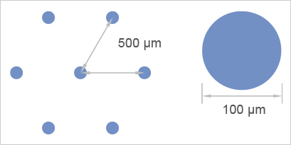 μ-Patterns表面呈現共價鍵結合的三肽Arg-Gly-Asp(精氨酸,甘氨酸,天冬氨酸-RGD)。來自細胞外基質蛋白纖連蛋白的該氨基酸序列介導了許多細胞類型(例如癌細胞)的附著。