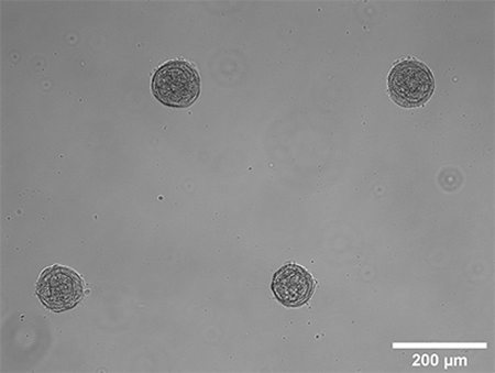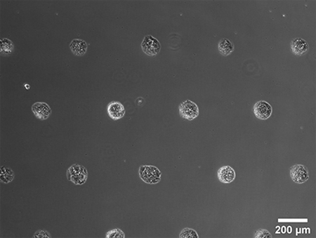 微型圖案是用于優化3D分析的強大工具。代替在單個孔中培養球狀體非常耗時并引入偏差,微圖案化提供了方便的定位和間距,可輕松地研究每個球狀體。 表面的平底結構和Bioinert鈍化的能力是使用高分辨率熒光成像進行球體測定的最佳組合。