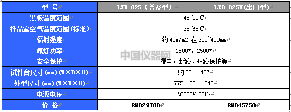 注:出口型氙燈耐氣候試驗箱標配無紙記錄儀。